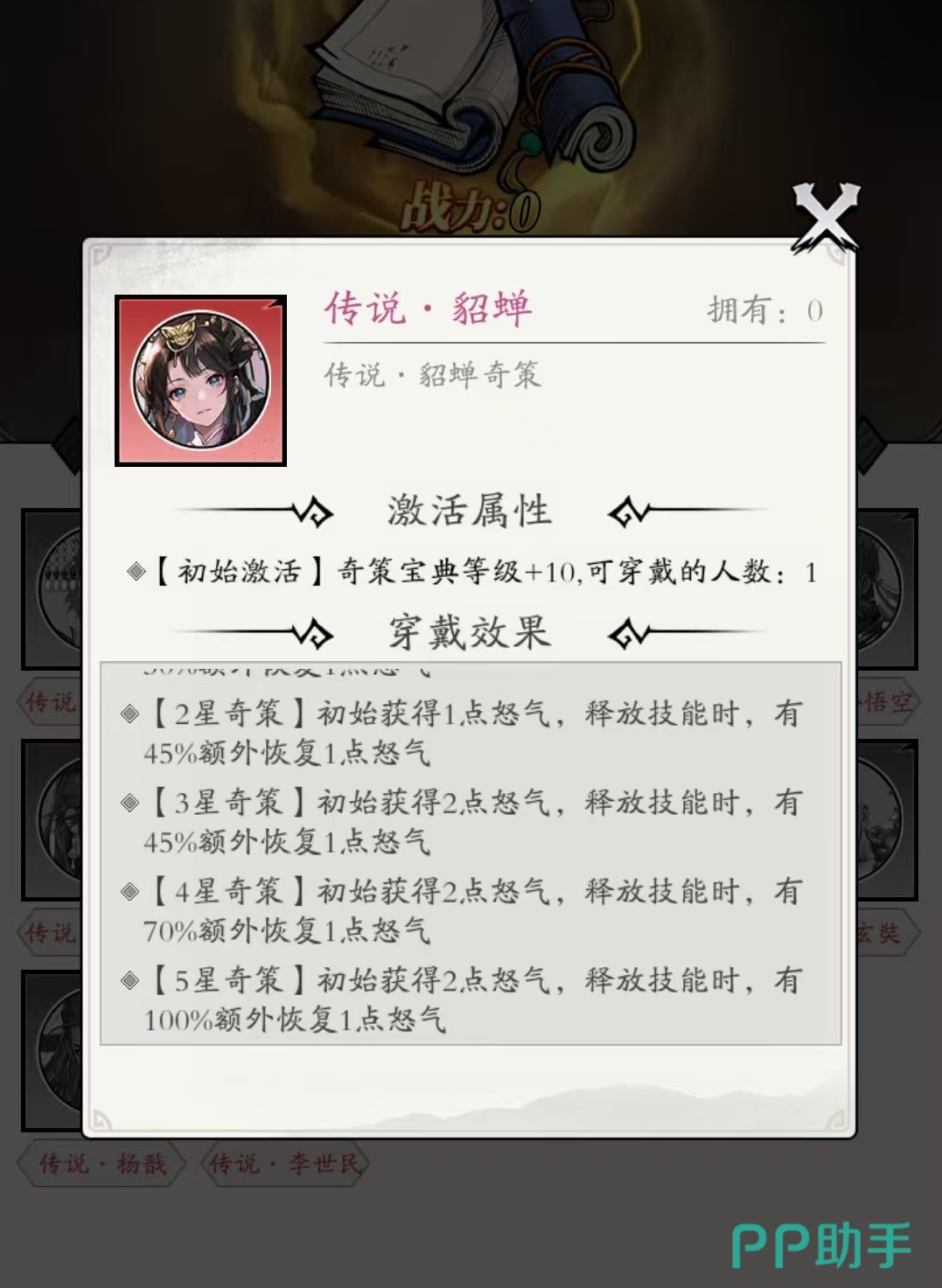 “传说秦始皇”奇策在低星阶段即可提供基础伤害加成,升至高星后更能无视部分敌方防御并大幅提升伤害输出,非常适合司马懿这类需要穿透防线的主力输出。“传说貂蝉”则赋予初始1点怒气,且释放技能时有概率额外恢复怒气,星级提升后效果进一步增强,有助于加快技能循环节奏。“传说司马懿”奇策专为该角色设计,使用技能后可叠加自身伤害,并降低敌方防御属性,形成双重增益。