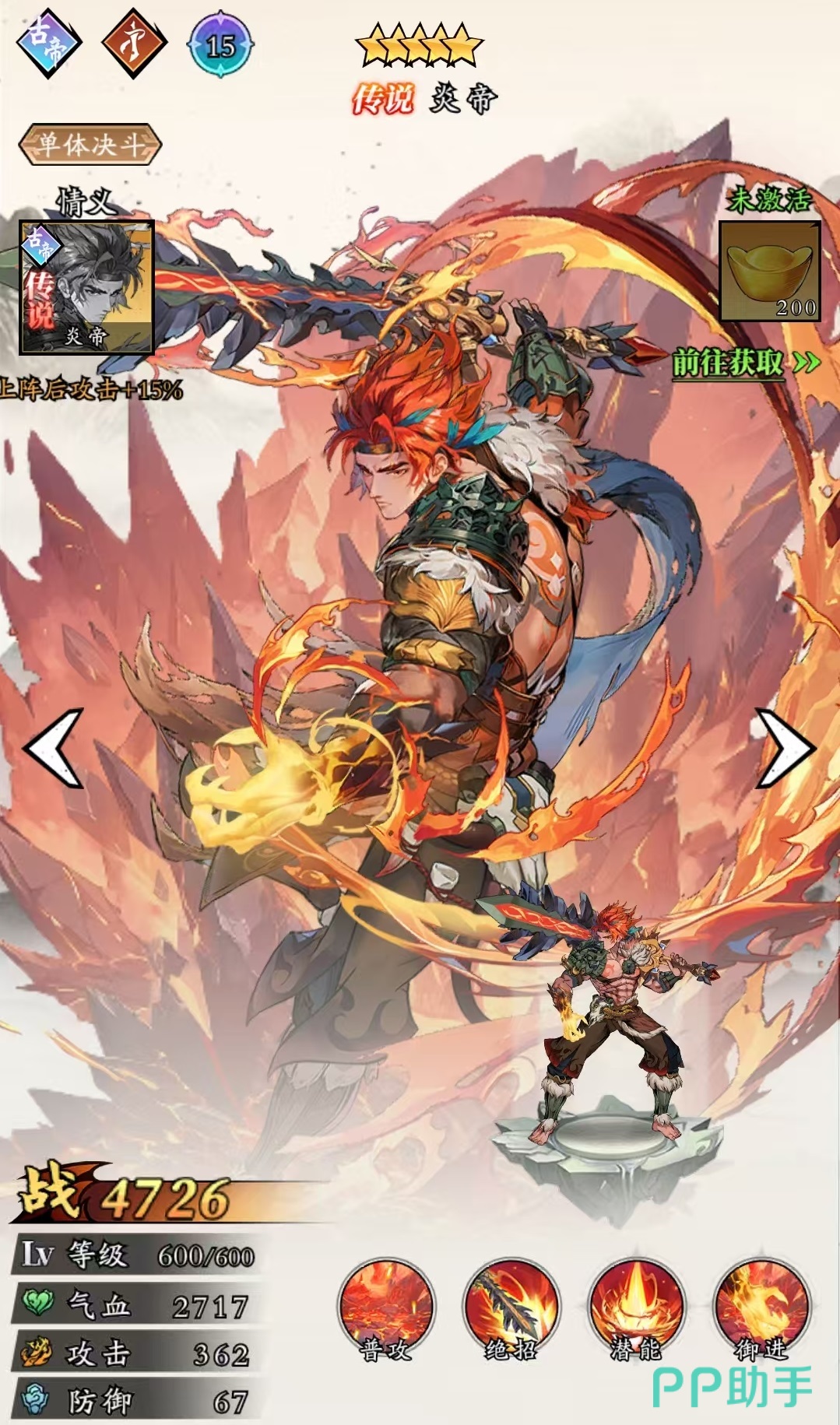 第四名由伏羲担任,其绝招不仅能对全体敌人造成伤害,还可为己方所有单位恢复生命值,并提升15%的攻击力。配合其潜能效果,释放技能后有一定概率返还怒气值,并附加20%暴击率与20%暴击伤害的增益状态,显著增强团队后续输出节奏。尽管个人伤害不算顶尖,但伏羲在辅助与续航方面的表现极为出色,是阵容中不可或缺的功能型核心。