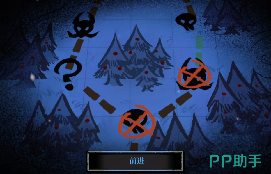 进入热焰河区域后,会遇到一口冒着热气的坩埚。尝试品尝其中液体,会使黑暗值增加3点,同时情感值上升20点;放弃尝试则无任何变动。继续往前走,前方出现岩浆流,选择攀爬可获得10点心情值,而冒险穿越则有机会获得白鸟护身符这一稀有物品。抵达破败殿堂后,搜查环境可获得500金币,选择在此休息则能够恢复角色的生命值。