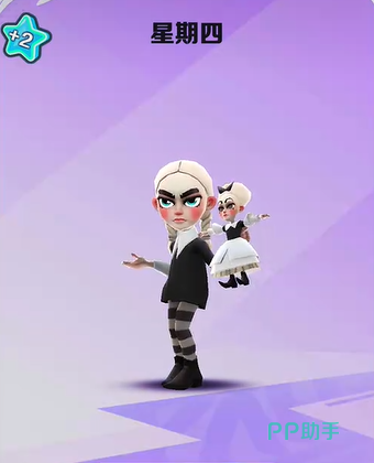 第四位角色名为星期四,可通过蓝钥匙盲盒抽取。顾名思义,该角色在每周四将激活额外5倍得分加成效果,非常适合追求排行榜排名的高手玩家。其滑板“烈焰玩偶”不仅外形炫目,还具备超级跳跃与贴近地面两项实用技能,显著提升赛道表现力。