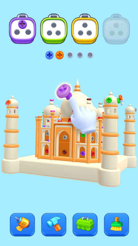 这是一款主打解压体验的益智操作类游戏,围绕“拧螺丝”这一核心动作展开,要求玩家准确判断顺序与方向,解决各种机械难题。随着关卡推进,挑战难度逐步提升,有助于培养孩子的专注力与手眼协调能力。