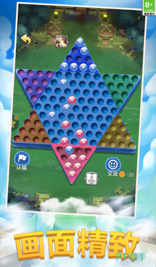 支持2至6人联机对战,也可选择单人挑战AI模式。每位玩家使用不同颜色的棋子,从己方基地出发,通过逐步移动或连续跳跃的方式向对方区域推进。先将所有棋子成功转移到对侧基地者胜出。虽然规则简单易懂,但想要取胜仍需精心规划路线,善用跳跃机制实现快速行进。游戏结束后可查看排行榜成绩,记录每一次进步。