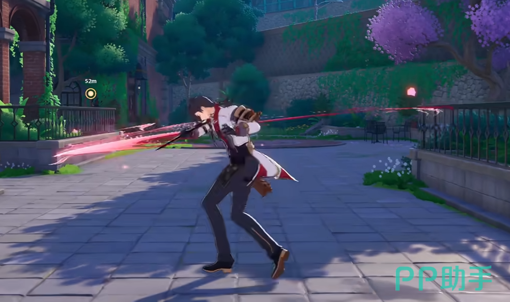 阿德勒以拐杖作为主要武器,普通攻击短按可发动五段近战连击,长按则会将其转换为枪械形态,对瞄准范围内的敌人进行远程精准射击。每次成功命中(无论是短按还是长按)都会为自己叠加1层“业”,该状态最多可叠加至20层。