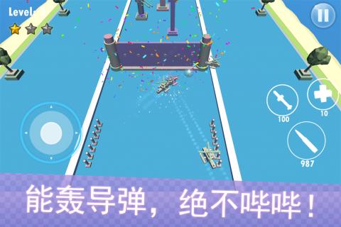 本作是一款操作简便但内容丰富的射击类飞行游戏。玩家需驾驶直升机深入敌后,摧毁多个据点并清除所有敌对势力。游戏中提供超过30种可解锁武器,涵盖机枪、火箭弹、制导导弹等类型,可根据战况自由切换。卡通风格的画面搭配炫目的爆炸特效,营造出轻松又不失激情的战斗体验,适合各类年龄段的玩家上手游玩。
