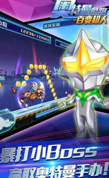 本作是一款横版跑酷类游戏,玩家需操控赛文在赛道上持续前进。途中会遭遇各类障碍物,如地面路障需跳跃越过,空中落石则要下滑闪避。赛道散落着能量球,收集满10个即可触发变身状态,变身后的赛文体型增大,具备更强的冲撞能力,能无视部分障碍。游戏提供多个场景供自由选择,每日登录还可领取抽奖券,有机会获取限定服饰为角色更换外观。