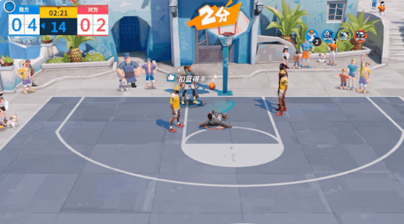 当处于篮下区域时,威斯布鲁克可激活“补扣终结”技能,显著提升争抢篮板时的覆盖范围与对抗强度。使用该技能完成补扣时,不仅能将球强力砸入篮筐,起跳瞬间还可对周围1米内的防守者造成击退效果,进一步扩大进攻优势。