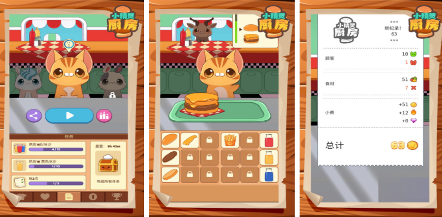 这是一款轻松有趣的模拟经营类游戏,玩家扮演一名经营汉堡店的小精灵。每日会有各种动物顾客光临,提出不同的餐品需求。玩家需根据订单快速制作符合要求的食物。随着收益积累,可升级厨房设备,解锁更多食材与料理种类,提升整体运营效率。