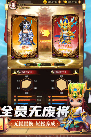 一款兼具趣味性与策略深度的手游,细致还原了三国时期的众多历史人物形象,玩家可以亲自操控心仪武将,投身于宏大战场之中。在广阔的沙盘地图上,指挥部队展开点对点对抗,感受紧张激烈的即时对决,不断击败敌军以获得装备和资源奖励。创新的养成机制支持上千种技能搭配组合,每位名将都能展现出独特的战术风格与布阵方式。
