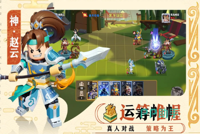 该游戏构建了一个风格独特的三国世界,所有武将均以乐高积木造型呈现,视觉表现新颖有趣。整体画面轻松写意,引导玩家深入体验四位主角的成长路径,每次转职都将开启新的策略维度。通过精心设计的卡组系统与武将搭配,玩家可在回合制战斗中施展多样战术。节奏紧凑却不失条理,全面考验玩家的临场判断与策略布局能力。