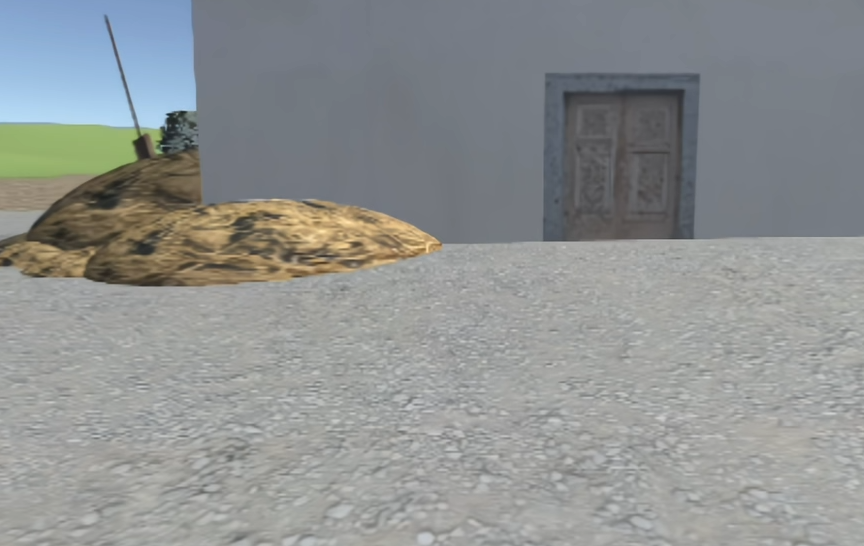 整个游戏的流程比较短,咱们在下车后可以先去农场的门口来进行互动,然后会发现门根本打不开,里面也没有人,之后可以在附近看一看,然后在不远处看到好像有一个人,于是我们准备去问一下。