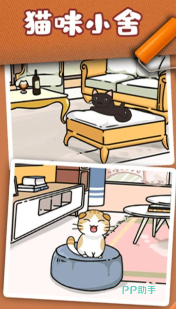 这是一家需要你经营的小猫咪的旅馆,首先你需要把房间收拾好,铺上毯子,放上猫咪喜欢的玩具,猫咪来的时候会先闻闻房间的味道,把他们安排好时候,每天必须定时更换猫粮,换干净的水,有时候还需要给他们吃一些零食,猫咪满意的话就会给你留下小礼物,慢慢攒礼物可以把旅馆弄得更大,接待更多可爱的猫咪。