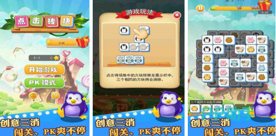 在关卡当中分布着各类型宠物方块,以点击消除为主要特色,与我们比较熟悉的羊了个羊,玩法超级相似,点击宠物方块就会直接放到下方的存放栏中,存放栏里有三个相同方块元素,那么就会消除,不过每个存放栏只能放7个方块,如果存放栏已经放满,依旧没有消除的话,那么就会导致游戏失败。游戏有精心设计的上百个关卡,好玩又有趣,还可匹配其他玩家。