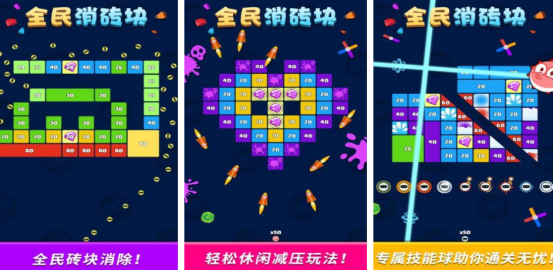 并没有广告的消除类手游,通过点击小球快速滑动发射小球的方式,碰撞到砖块,碰撞到适合的位置就能够快速消除。得到单次消除较多的砖块分数就会较高,获得的奖励会更多,每个关卡大概仅需2~3分钟就能完成,可随时随地拿起手机快速击碎这些五彩缤纷又有趣的砖块,每次击碎时都会产生具有激情的音效。