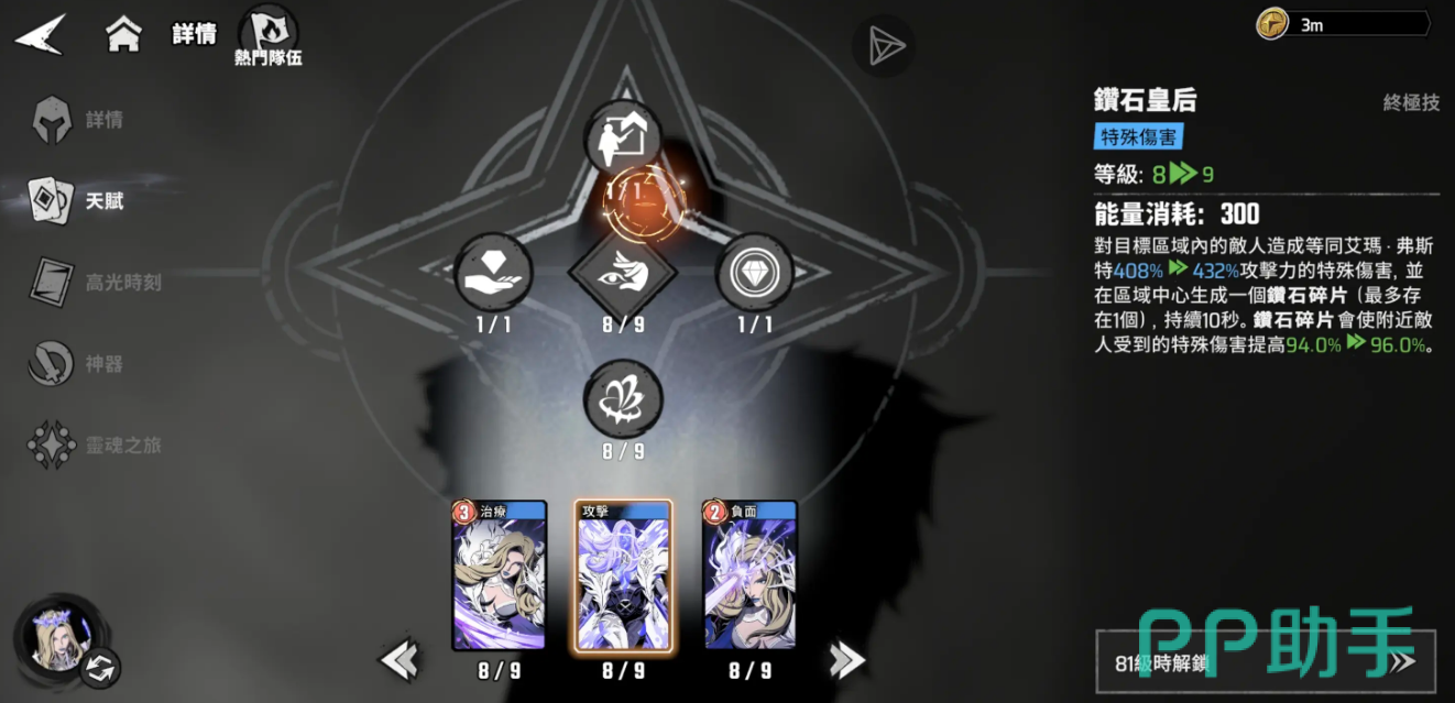 在“雷神+美队+白皇后”的经典组合中,白皇后的终极技能可增强雷神的特殊伤害类型,并削弱敌方防御属性,从而进一步放大雷神各项天赋的实际收益。与此同时,美队提供的攻防增益效果也能提升雷神的持续作战能力,使其能够在前线稳定输出,充分发挥天赋叠加的优势。