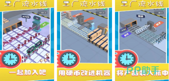 玩家通过运营管理加工厂,不断提升生产线等级,将制造出的商品出售换取金币。招募多样化工人角色,增加单位时间内的产出量。在积累足够资金后,可解锁后续关卡内容,并快速推进流水线升级进程,最终达成阶段性胜利目标。游戏设计简洁直观,每完成一个阶段任务都能带来强烈的成就感体验。