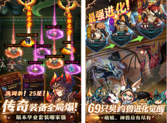 该游戏融合了肉鸽(Roguelike)与地牢探险元素,采用暗黑风格美术设计,营造出神秘且危险的冒险氛围。玩家将在随机生成的地城中展开探索,操作简便却充满挑战性。游戏中不仅拥有大量神级装备与宠物可供获取,还支持多人组队挑战高难度副本。随着角色不断成长,契约兽也能逐步进化,配合自动战斗系统,带来流畅而畅快的战斗节奏。