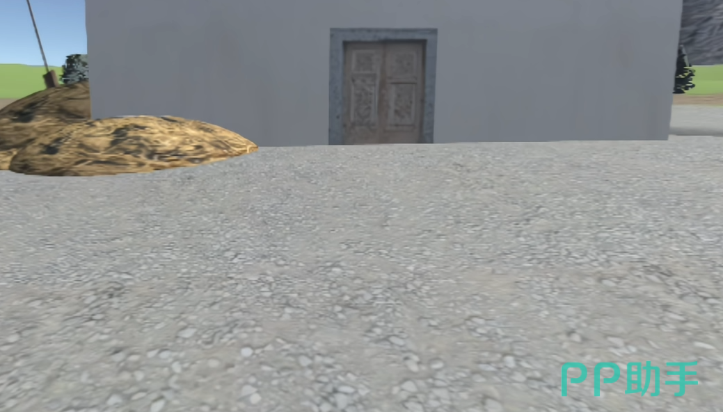进入游戏初期,玩家抵达农场后会尝试靠近主屋,却发现房门紧闭无法进入。周围环境空旷寂静,仅能看到几个草垛,不见任何人影。在初步搜寻无果后,角色将向更远区域移动,试图寻找其他线索或人员。