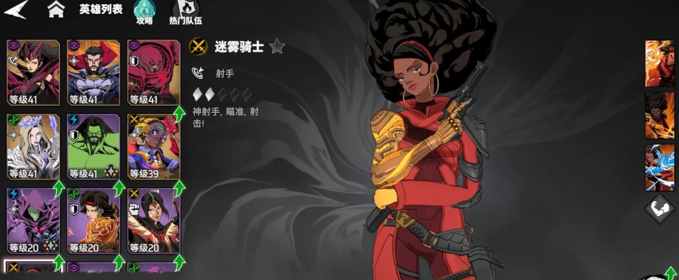 玩家可收集众多漫威IP中的知名角色,涵盖英雄与反派两大阵营。角色按职能划分为射手、支援者、防御者与战士四大类别。例如绯红女巫、钢铁侠、美国队长、月光骑士、白皇后、安吉拉等均在游戏中登场。每场战斗最多派遣三名角色出战,不同职业承担不同战场职责:射手主输出,支援者提供增益或治疗,战士负责近战压制,防御者则承担承伤任务。合理的角色组合与前后排站位选择,将直接影响战斗效率与胜率。战前布阵环节需根据敌方阵容灵活调整位置分布。