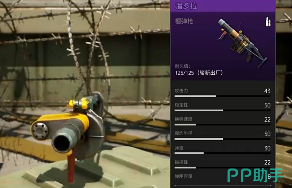 潘多拉的基础属性为:攻击力43、稳定性50、换弹速度22、爆炸半径50、弹速30、操控性22、弹匣容量8。相较于前者,这款榴弹炮更注重连续火力输出能力,具备更高的弹药储备和稳定的打击频率,能够持续对目标区域进行压制轰炸。