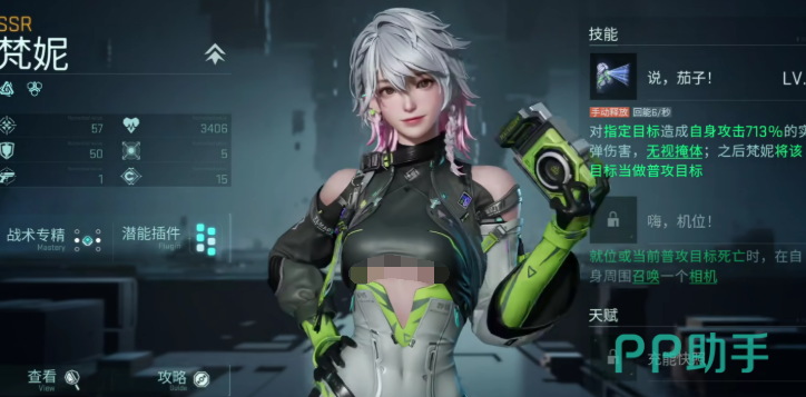 梵妮是游戏的远程输出型角色,拥有单体爆破能力,可以对制定的目标,造成基于自身攻击倍率的713%真实伤害,同时无视掩体,在成功造成伤害后,会持续性的进行单体目标追击。