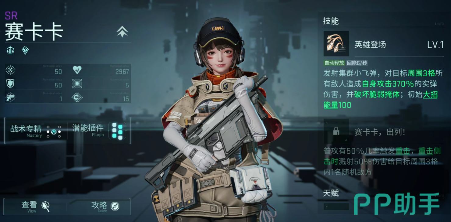 赛卡卡是游戏当中赠送的远程角色,她的机制可以加速玩家推图效率,在后期时,可以通过转型能力,直接转变成为突击手。