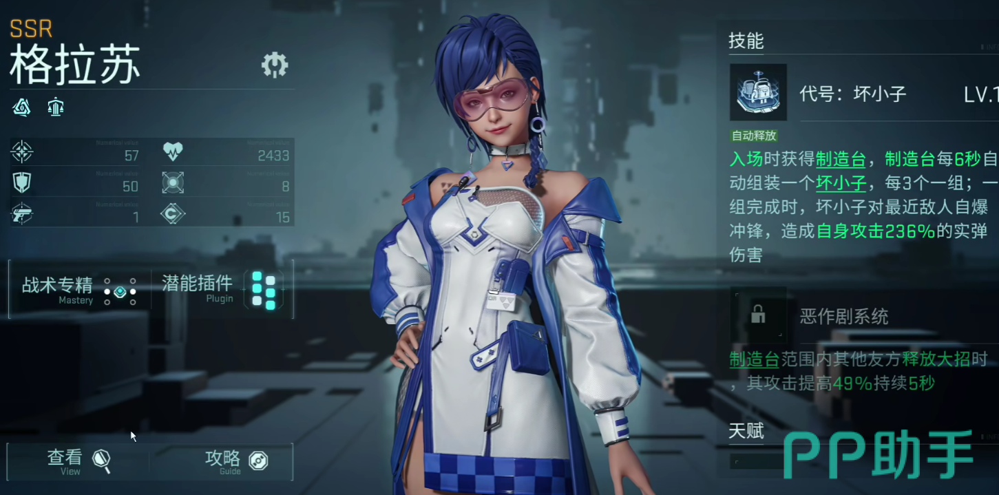 格兰芬是游戏内的工程型输出角色,同时兼备召唤组装的技能,在配备了“坏小子”机器人后,可以对最近的敌人单位造成自爆伤害,该伤害为真实伤害,且基于自身攻击倍率236%进行数值转化。