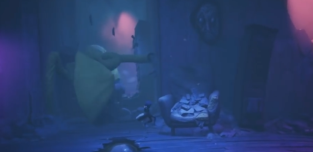 而在隐藏结局中,剧情则显得更加耐人寻味。收集齐全部16个幻影小孩后,玩家会在结尾看到一个额外的动画片段:小六逃脱后在街道上停下脚步,看向一张贴在地上的海报——那正是第一代《小小梦魇》中贪鳄号的全景图。这一幕让整个系列的时间线有了新的解释。原来,《小小梦魇》并不是一代的续作,而是一代的前传。被恐惧与孤独吞噬的小六,在经历了放弃Mono的内疚与扭曲后,逐渐形成了贪婪的性格,这也为她后来的故事埋下了伏笔。
