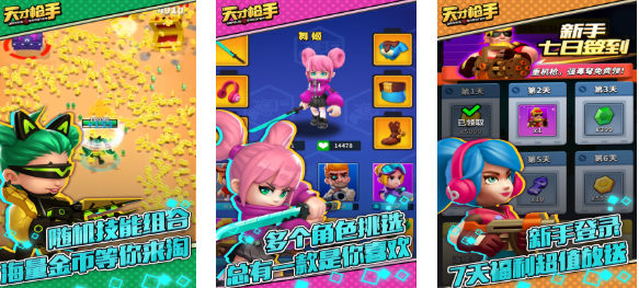 天才枪手是款整体画风超级呆萌的割草性质射击类游戏,萌版的UI加上快捷的割草性质玩起来与众不同,随机的技能组合帮助大家轻松对抗各种敌人,爆金币的模式、自由拾取资源的设定都是亮点,而且新手七日签到获取到的资源也超级多,超级丰富的游戏福利也会让射击爱好者慢慢获取。