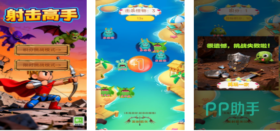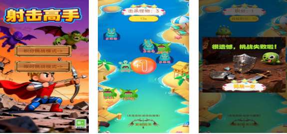 射击高手是款与英雄元素相关的卡通风格竖屏射击类游戏,主要任务就是使用弓箭不断射击怪物进行闯关,随机出现的怪物和自由升级武器的机制都是亮点,关卡设定众多也有着极高的挑战任务可以参加,而且使用弓箭尝试消灭特定怪物会获取更强装备,这款模拟弓箭手的射击闯关主题游戏沉浸感不俗。