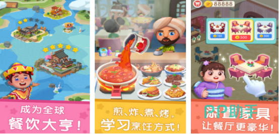 成为精通全国各地不同地区美食的主厨,带你领略美食的王国,扮演餐厅中的厨师,烹饪各种特色美食,成为明星厨师,有情景模拟与趣味互动,能够提升动手能力,还能探索全世界各地美味佳肴的种种类别。此手游不仅适合喜欢休闲的成年人,非常适合儿童百变菜式与美味食物自由挑选,煎炸烤煮纷纷上阵,让宝宝了解全球各地的美食文化。