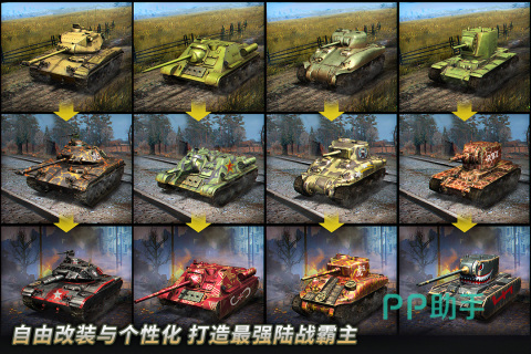 游戏拥有上手零门槛的特点,主线任务一目了然,对战方式简单,操控性强,可展开协同作战,增强对战刺激性。能够让玩家选择的坦克类别超过300种,还可360度全方位对坦克进行改造,改造部分包括装甲车体,以及其他各类部件的装备,以此获得专属坦克,在综合属性方面得以凸显,在对战中提升获胜几率。玩家可通过pve副本形式展开竞技,也可通过pvp对战模式获得资源。