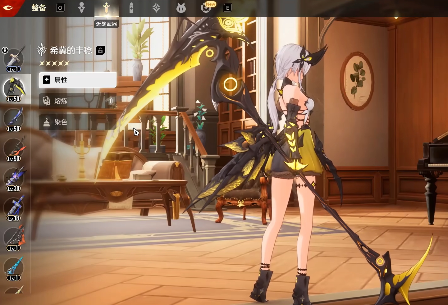 黄黑配色的一把长柄武器,有着背水加15的效果,且风属角色使用它时,会令自身终结技降低95%的伤害,同时在释放了终结技后,技能威力能上升45%。虽说该效果持续时间仅有2.5秒,但只要造成了技能伤害或是远程武器伤害,那么该效果还能持续延长0.1秒,且可重复触发,在实战中若是攻击节奏掌握得好,可令该效果一直存在不会断掉。