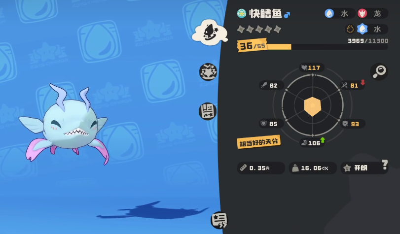 快鳍鱼作为一个水系精灵,在对战的过程中,可以有更强的灵活性,除了较快的速度之外,角色的物理攻击,魔法攻击数值都非常优秀,生命值会比较弱一些,但对于角色自身来说,设定也是比较平衡的,玩家可以带领这个角色,选择多种不同的战斗风格,建议在对战的时候,优先用极快的速度进行物理攻击,每一次攻击都能带来大量的物理伤害,利用较快的速度,也能在对战的过程中率先打击对手,有需要的玩家可以尝试用这种方式打乱对方的节奏。