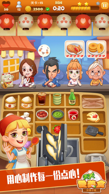玩家化身一名日本点心制作大厨,通过制作各种传统日式点心和扩张店铺完成盈利。游戏包含几百个有趣的顾客订单关卡,从节日的忙碌任务到日常的顾客购买,都需要健康的蛋糕食材和充分的时间管理,满意度会影响店铺的声望和收益。游戏场景有着十分温馨的动画场景,玩家在解锁新菜品时,也会欣赏到各种有趣的日本文化特色。