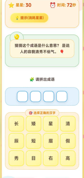 这款为提升儿童成语水平打造的文化小游戏,设计的十分巧妙和清新,简洁而又古朴的画面和背景音,让儿童在放松环境中获取知识。游戏包含了成语填空和接龙一些模式,玩家需要对成语有一定掌握度才能顺利通关,在家长帮助下认识和拓展成语精华。游戏为成语设置了典故、出处和拼音读法,学习到课堂上没有的知识点。
