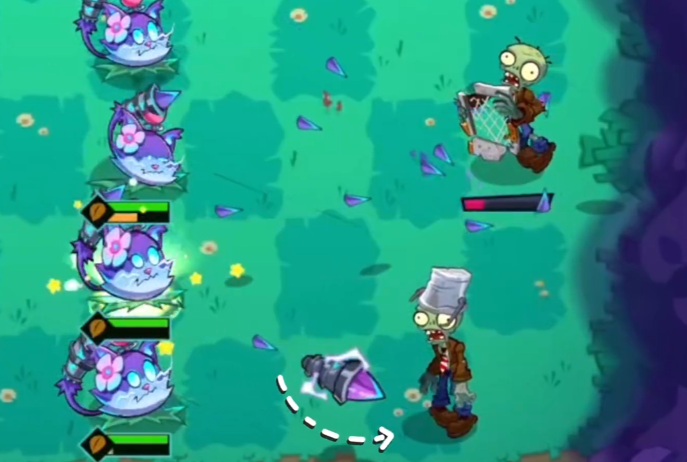 猫尾草的特性是不需要莲叶,就可以直接种植在水中,它的攻击会发射出一颗全屏追踪的针刺,针刺会自动锁定敌人,可以攻击位于空中的单位能无视高低差,这个针刺会优先帮助攻击僵尸,场上没有僵尸的时候才会攻击障碍物。