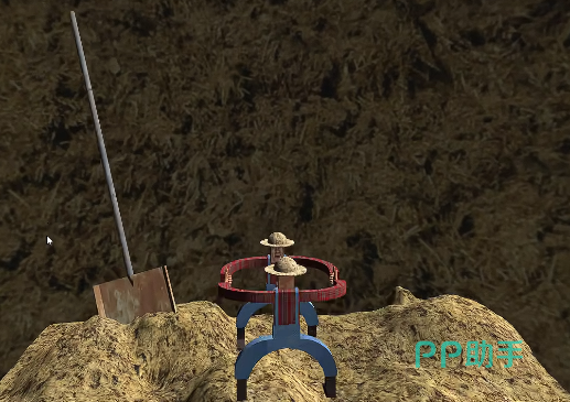 当靠近该稻草人后,角色会被传送到一个奇异的空间,在这里会出现两个稻草人将玩家包围。此时不要急于离开,应尝试将视角尽可能拉远,直到画面完全展开。在背景区域,可以清晰看到一把锄地用的农具静静放置着——这正是第一个隐藏彩蛋的内容。由于大多数玩家不会主动放大观察整个场景,因此这一细节常常被错过。