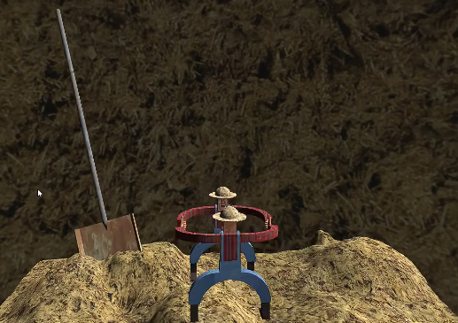 进入该空间后,玩家会被两个稻草人包围。此时应尝试拉远视角至最大范围,通过放大场景可以完整观察到整个区域的布局,并在背景中发现一把静置的锄地工具。这正是首个隐藏彩蛋的关键所在。多数玩家未能发现的原因,往往是未意识到视角可调节,或忽略了远景中的细节。