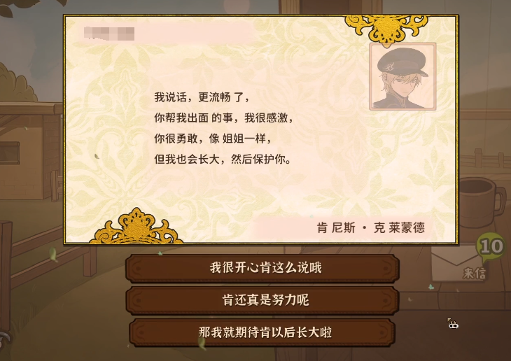 除了在户外互动之外,对方还会向玩家寄信,可以在第一封信选择真意外很开心,在第二封信寄过来的时候选择期待,接着在第三封信寄过来的时候,选择我也有很多景色想要和你分享,只要通过做出这些选项就可以提升好感度,这样能和对方顺利生活在一起。