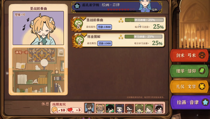这个游戏里除了常规的事件以及恋爱之外,还会有一定的战斗玩法,另外在游戏里通过培养,也可以让角色有专属职业走向,在这种设定下,角色都需要拥有特定的技能,如果想提升的是角色的单体爆发能力,那就可以选择不死鸟,利用这个能力,除了爆发伤害之外,还会有灼烧伤害,非常适合后期和boss对战,玩家也可以选择太阳鸟,这个技能的设定和不死鸟是类似的,但是整体的能量消耗会比较多一些,比较侧重于群体输出,前期可以使用,后期对抗boss会感觉能力不足。