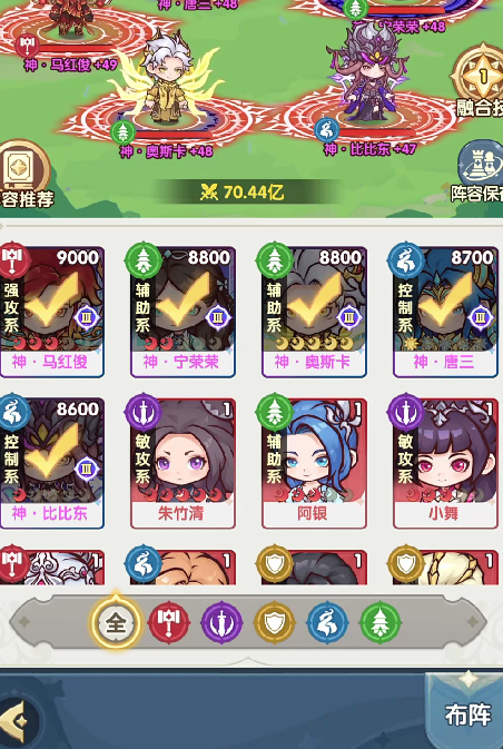 昊天锤具备有极强的单体爆发输出能力,在和兽王比拼期间,可以尽可能的削弱他的血量,而邪火凤凰可以尽快的清理,兽王所召唤出来的小怪,天乾白玉鼎实际上可以直接替换成为七宝玲珑塔,但天乾白玉鼎的稳定性较强,如果玩家队列内,并不存在有高级的输出类角色,还是以天乾白玉鼎为主要护盾位置,蓝电霸王龙属于dot输出型单位,玩家可以在开局时就使用蓝电霸王龙,为敌方挂上一段痉挛的buff。