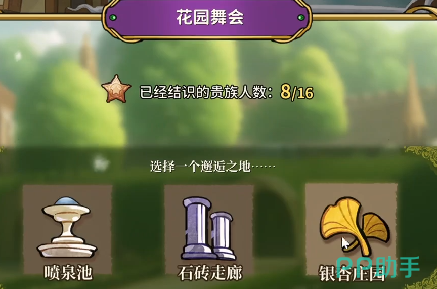 花园舞会共汇集了16名贵族NPC,他们并非随机出现,而是按照固定区域分布于三个主要场景:喷水池、石砖走廊以及银杏庄园。每个区域的角色数量分别为5人、5人和6人。了解他们的位置有助于高效完成对话任务并选择合适的交流话题来增进关系。