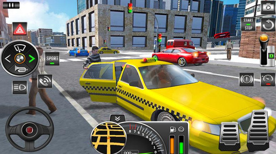 这款游戏能让大家体验当出租车司机的感觉,也能满足我们开车的兴趣。在城市里开出租车时,要按每位乘客的要求,把他们从起点送到目的地,这样就能赚到不少钱。它的画面和物理效果都做得很到位,玩的时候会感觉真的身处游戏场景里。屏幕上会显示开车需要用到的关键操作按钮,点一下就能让车子转向加速,或者踩刹车。