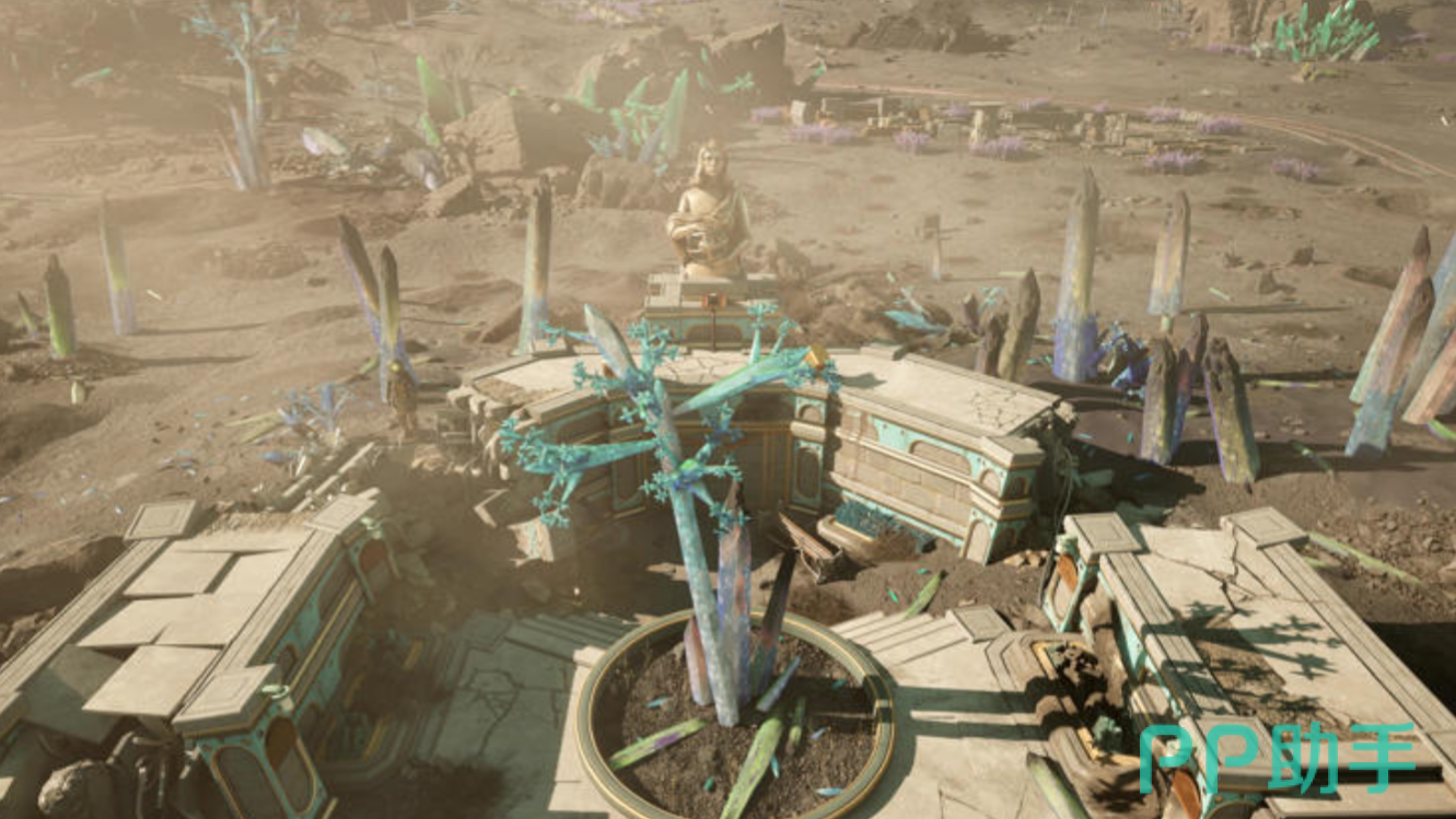 尽管地图规模宏大,但并未出现空洞感,反而布满了失落文明的遗迹与沧桑地貌,展现出星际文明曾经的辉煌历史。尤其是独特的水晶地质构造,不仅提升了视觉美感,也加深了星球本身的神秘氛围,使玩家在探索中自然产生敬畏之情。