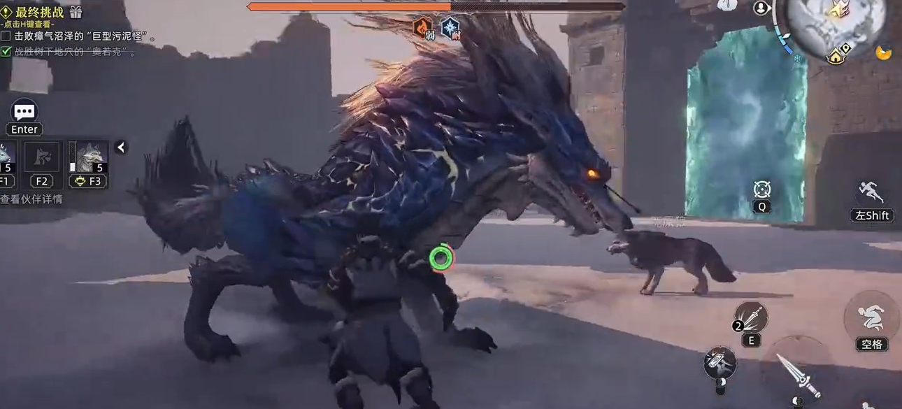 在雪山外围区域,玩家需要面对的是强大首领——银麾,这是一只体型庞大的银白色雪狼,作为狼族之王拥有极高的战斗力。建议使用远程弓箭类武器进行周旋输出。战胜银麾后,玩家将获得名为“暗影之夜”的奇物,它不仅能增强对暗属性伤害的抗性,还能小幅提升自身的暴击几率,实用性极高。