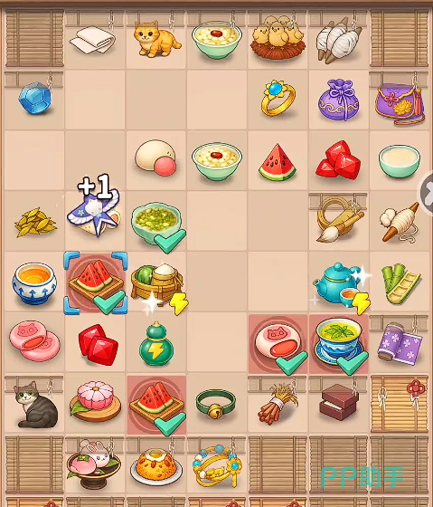 游戏初始会引导玩家通过教学关卡熟悉核心机制。其消除系统采用的是“合成进阶”模式——以小麦为例,首先将两个小麦合并生成面粉,再将两份面粉合成为豆沙包,最后将两个豆沙包融合实现消除,并获得铜板奖励。这种“三步合成”是所有食材类物品的通用规则,也是闯关获取资源的主要方式。