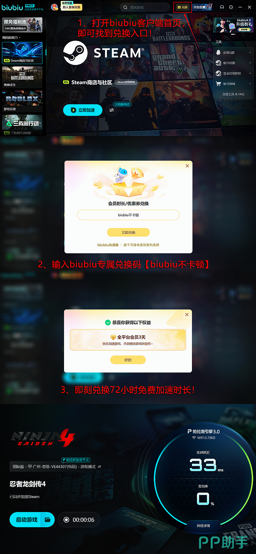 此外,豪华版还包含两套限定外观道具:“邪神剑”皮肤和“神圣奇美拉”武器套装,可用于自定义八云的战斗形象,增强个性化体验。若在实际游玩过程中遇到画面延迟或操作卡顿问题,推荐使用biubiu加速器进行网络优化,新用户注册即可领取24小时免费加速时长,畅享稳定流畅的游戏环境;同时,输入兑换码【biubiu不卡顿】,新老玩家均可额外获得3天免费使用权限,有效缓解因网络波动导致的操作延迟。