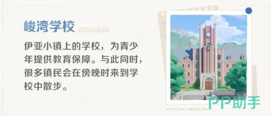 峻湾学校是伊亚镇为年轻居民设立的教育机构,在任务流程中多次出现。傍晚时分,不少本地居民会前来校园周边散步,使得该区域在特定时间段内NPC密度较高,合理利用时间规律有助于更高效地完成目标对话或事件触发。