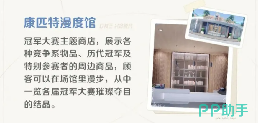 康匹特漫度馆是一个主题鲜明的特色场馆,集中展示冠军大赛相关的纪念商品与历史资料。馆内陈列包括历届优胜者、特殊参赛者的周边产品,并播放过往赛事精彩片段,营造出浓厚的竞技氛围。尽管部分商品定价偏高,但仍吸引大量玩家驻足浏览,是了解赛事文化的重要窗口。