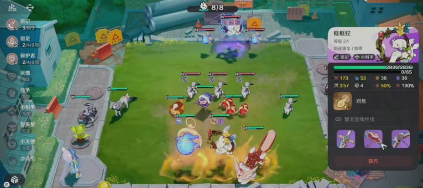 当框框蛇与目标之间的距离超过两格时,能够触发额外的远程增益效果,进一步提升其输出效率。若要最大化其实战能力,羁绊系统的激活至关重要。当达到8羁绊层级时,框框蛇将获得高达40%的攻击力加成,同时在其他基础属性上也有显著提升。其核心技能为“对焦”,释放后会锁定距离最近的敌方单位,并发射能量弹造成物理伤害。该技能不仅具备高爆发特性,还能在施放后为自身提供强化效果。